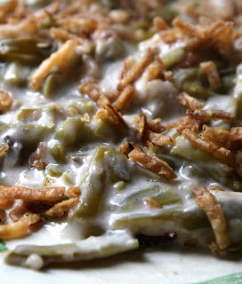 And all the ingredients are on sale for the holidays at any grocery store. French fried onions are a decadent topping -- while canned green beans are boring, until you mix in a can of Campbell's Mushroom Soup. *For a 21 Century version, use fresh green beans that are on sale for a dollar per pound from now until Christmas.